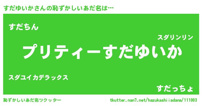 | ヘコむあだ名 | 『すだもー』『すだゆいか(小並感)』 |