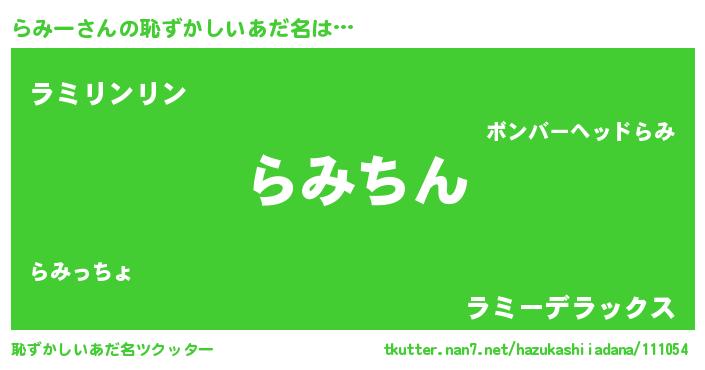 | 意味不明あだ名 | 『永久保存らみー』『自称らみー』 |