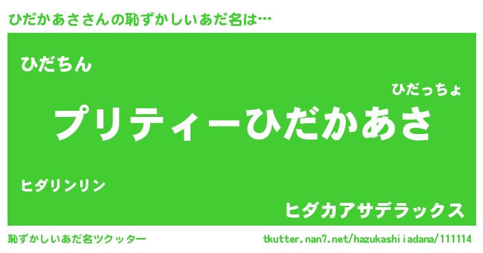 | ヘコむあだ名 | 『ひだにゅー』『ひだかあさ(笑)』 |