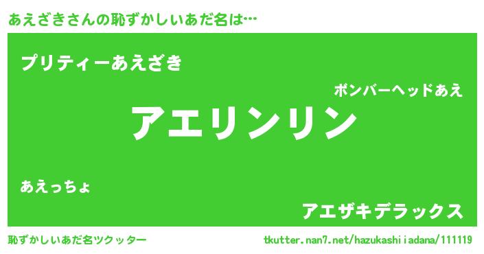 | 男性向けラノベタイトル風あだ名 | 『あえざきの嫁は女の子じゃないと思った?』 |