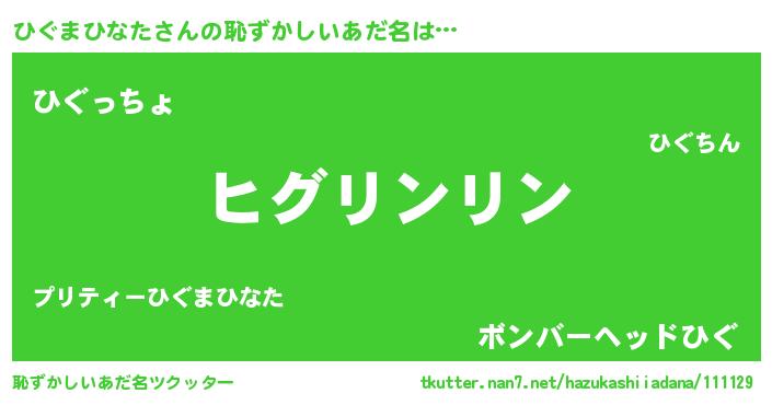 | ヘコむあだ名 | 『ひぐを』『豆乳』『ひぐにゅー』 |