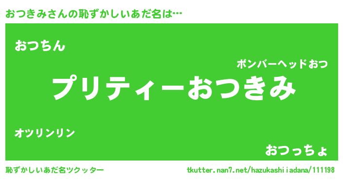 | 男性向けラノベタイトル風あだ名 | 『おつきみの憂鬱』『緋弾のオツキミ』 |