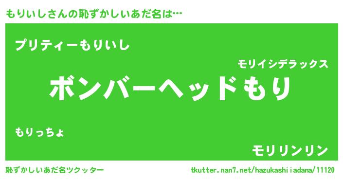 | ヒーロー風カッコイイあだ名 | 『慈愛の使者もりいし』『黄金騎士モリ』 |