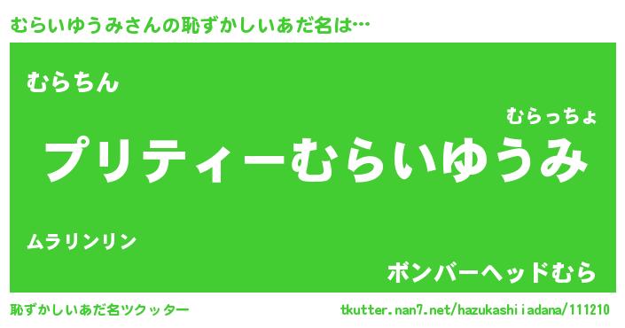 | ヘコむあだ名 | 『むらにー』『むらいゆうみ(小並感)』 |