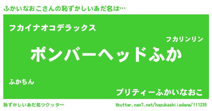 | ヘコむあだ名 | 『ふかっふぃ~』『ふかっぺ』 |