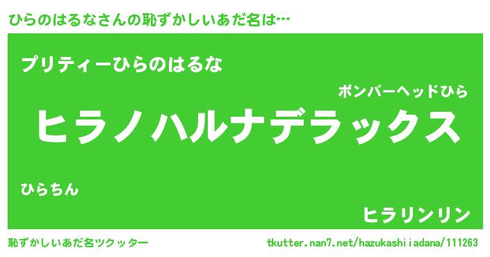 | 意味不明あだ名 | 『自称ひらのはるな』 |