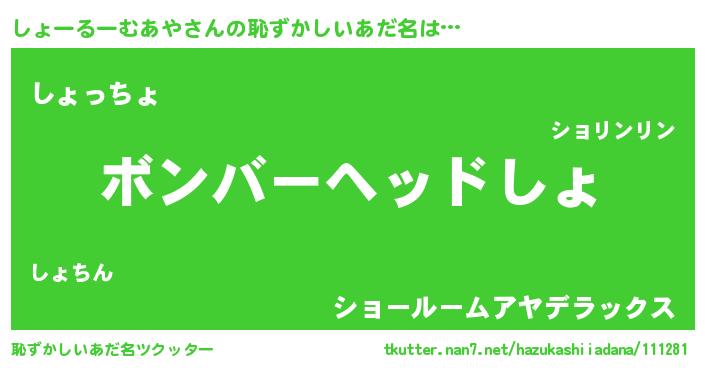 | 欧米人風あだ名 | 『しょーるーむあや・ステッグマイヤー』 |