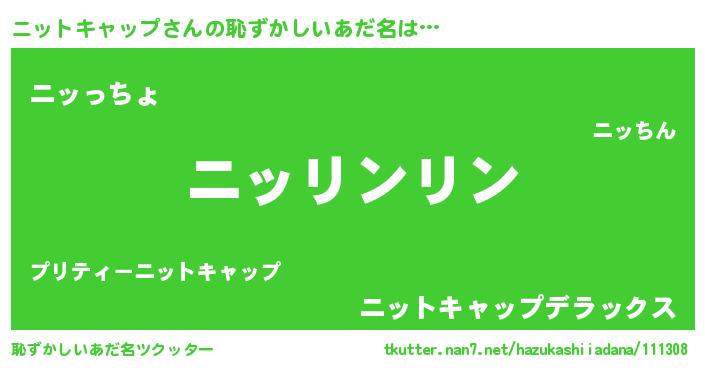 | ヒーロー風カッコイイあだ名 | 『黄金騎士ニッ』『ネオニットキャップ』 |