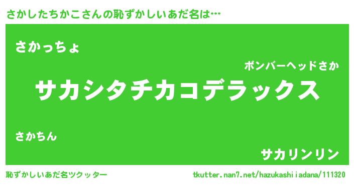 | 意味不明あだ名 | 『住所不定無職さかしたちかこ(3歳)』 |