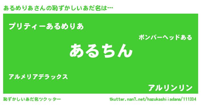 | ヘコむあだ名 | 『あるめりあ(笑)』『あるふぇ~』 |