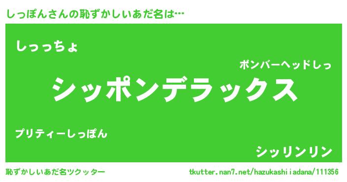 | 男性向けラノベタイトル風あだ名 | 『Re:しっぽんから始める異世界生活』 |