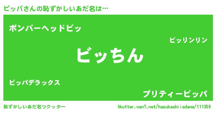 | ヘコむあだ名 | 『ビッパ(笑)』『ビッにゅー』 |