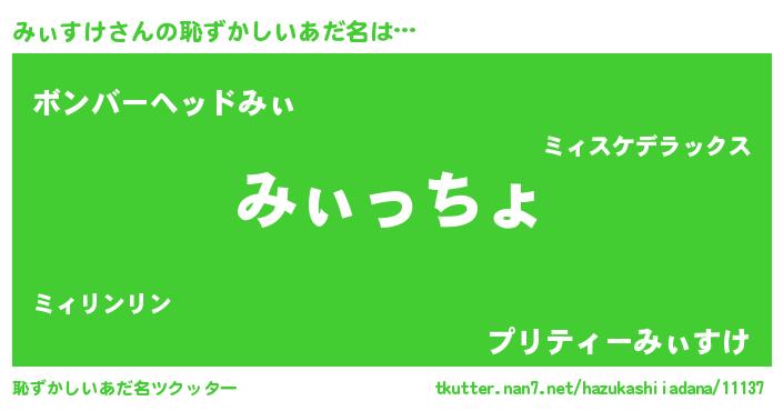 | 欧米人風あだ名 | 『みぃすけクリステル』 |
