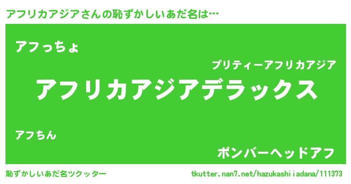 | 意味不明あだ名 | 『自称アフリカアジア』 |