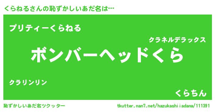 | ヘコむあだ名 | 『くらふぇ~』『くらねる(遠い目)』 |