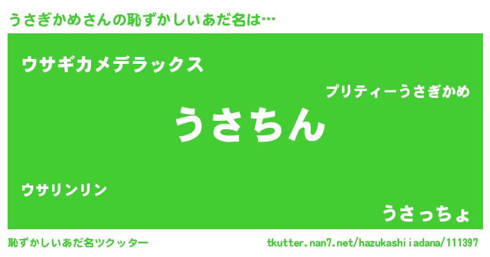 | 意味不明あだ名 | 『永久保存うさぎかめ』『自称うさぎかめ』 |