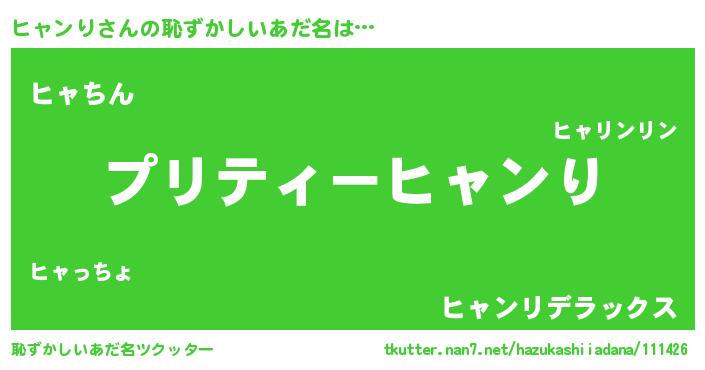 | ヘコむあだ名 | 『ヒャふぇ~』『ヒャンり(震え声)』 |