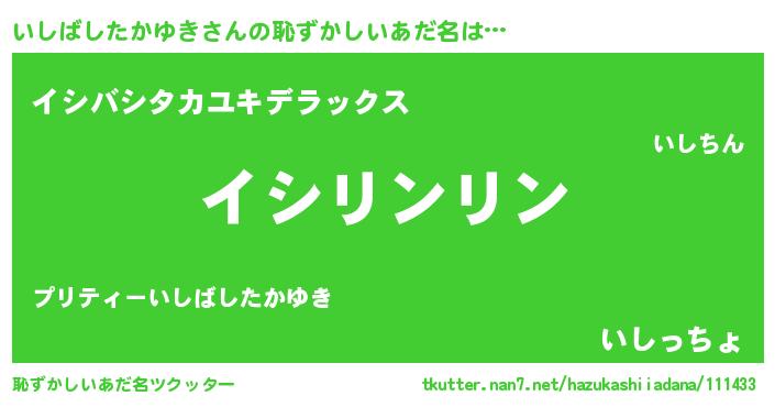 | ポケモン風あだ名 | 『ヒイシバシタカユキ』『イシセウス』 |