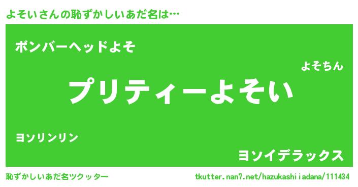 | 胡散臭い通販商品みたいなあだ名 | 『必ず成功するブレスレット…その名も「よそい」』 |