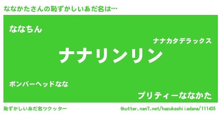 | 男性向けラノベタイトル風あだ名 | 『ななかたの嫁は女の子じゃないと思った?』 |