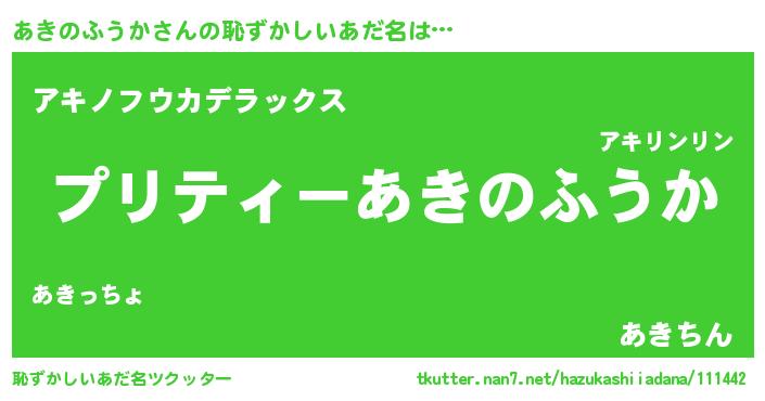 | ヘコむあだ名 | 『あきにゅー』『あきのふうか(爆)』 |