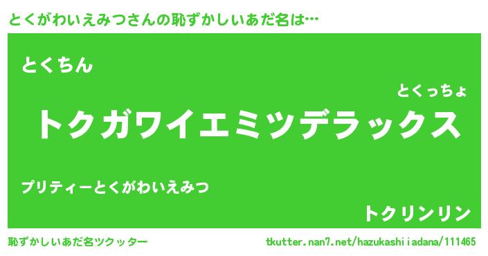 | 可愛いあだ名 | 『とくうちぇる』『とくがわいえみつママ』 |