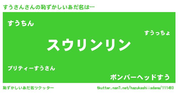 | 男性向けラノベタイトル風あだ名 | 『ダンジョンにすうさんを求めるのは間違っているだろうか』 |