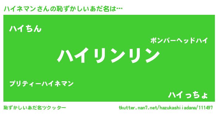 | ヘコむあだ名 | 『ハイを』『ハイネマン(笑)』『牛乳』 |
