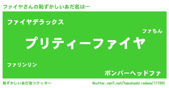 | ヘコむあだ名 | 『ファもー』『ファイヤ(小並感)』 |