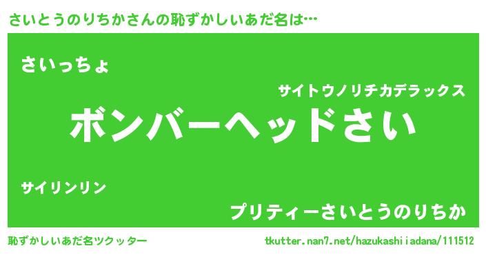 | 意味不明あだ名 | 『眠気覚ましガムさいとうのりちか味』 |