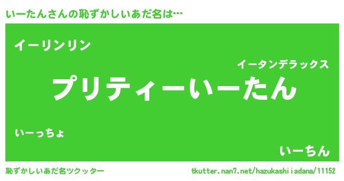 | 意味不明あだ名 | 『ペロリンいーたん』『永久保存いーたん』 |