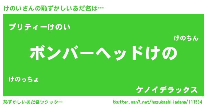 | ヘコむあだ名 | 『けのっふぃ~』『けのい(笑)』 |