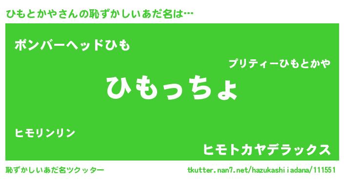 | ポケモン風あだ名 | 『ヒモトダネ』『ヒックウザ』 |