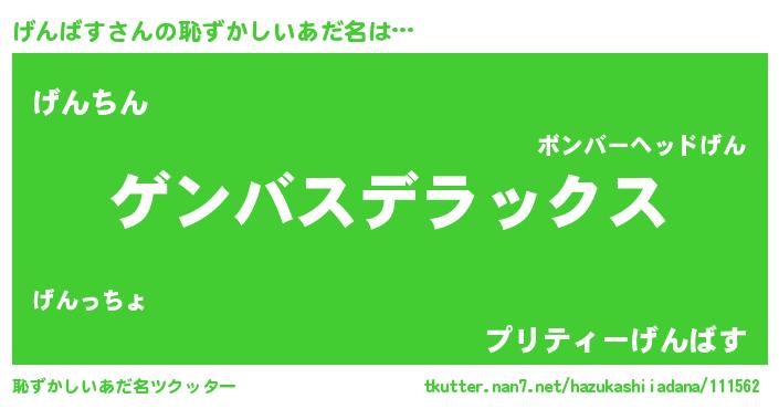 | 意味不明あだ名 | 『自称げんばす』『永久保存げんばす』 |