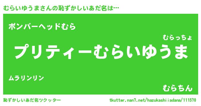 | 意味不明あだ名 | 『ペロリンむらいゆうま』 |