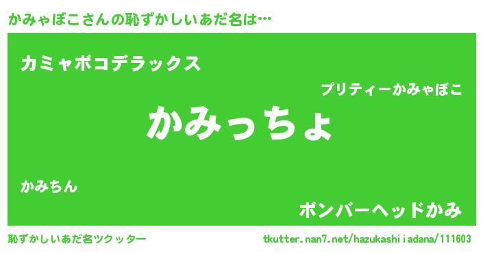 | 欧米人風あだ名 | 『かみゃぼこクリステル』 |