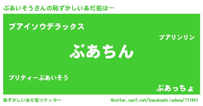 | 男性向けラノベタイトル風あだ名 | 『転生したらぶあいそうだった件』 |