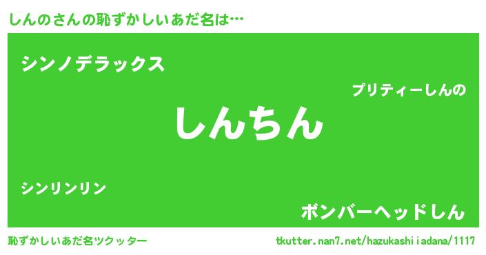 | 女子向けラノベタイトル風あだ名 | 『異世界で失敗しない100のしんの』 |