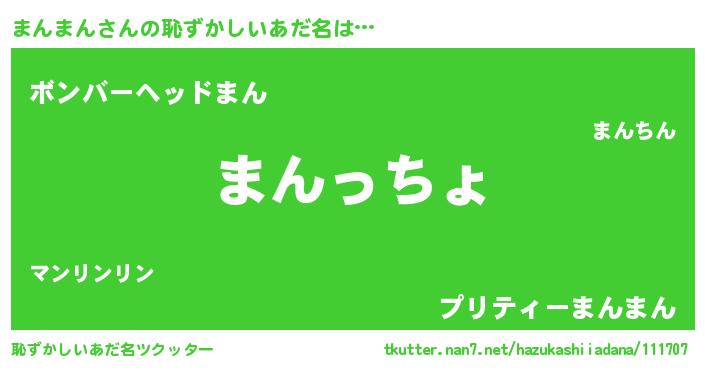 | 意味不明あだ名 | 『まんまんフォーエバー』 |