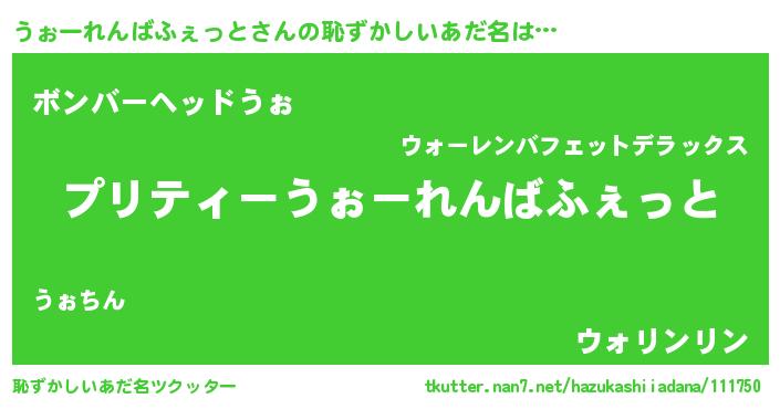 | 肩書あだ名 | 『うぉーれんばふぇっと社長』 |