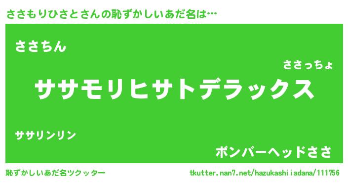 | 意味不明あだ名 | 『自称ささもりひさと』 |