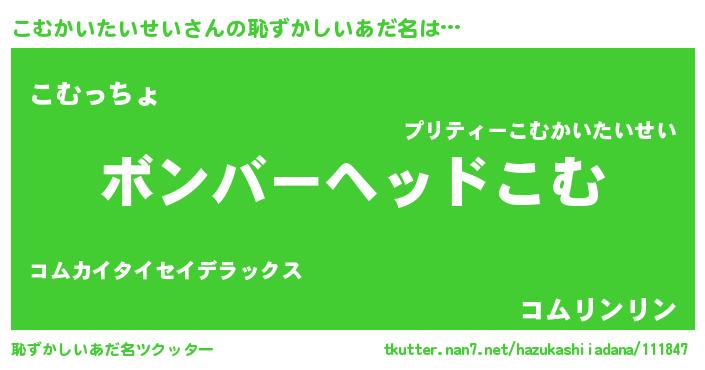 | 可愛いあだ名 | 『こむぷりん』『こむちゅっちゅ』 |