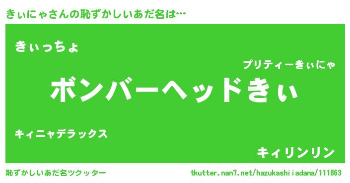 | ヒーロー風カッコイイあだ名 | 『天空の使者きぃにゃ』『銀牙騎士キィ』 |