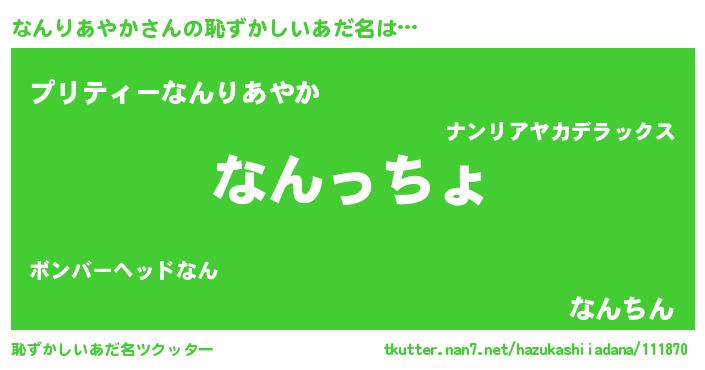 | 欧米人風あだ名 | 『なんりあやかクリステル』 |