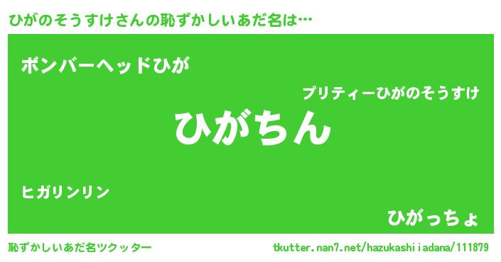 | 意味不明あだ名 | 『永久保存ひがのそうすけ』 |