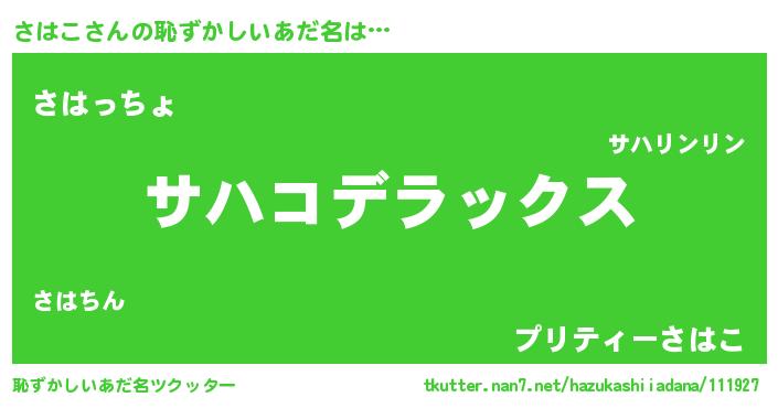 | ヒーロー風カッコイイあだ名 | 『ウルトラ戦士サハコ』『スーパーサハコ』 |