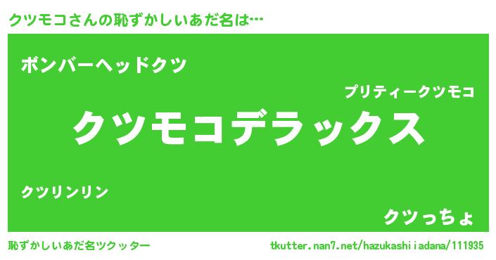 | ヒーロー風カッコイイあだ名 | 『最強戦士クツモコ』『仮面クツダー』 |