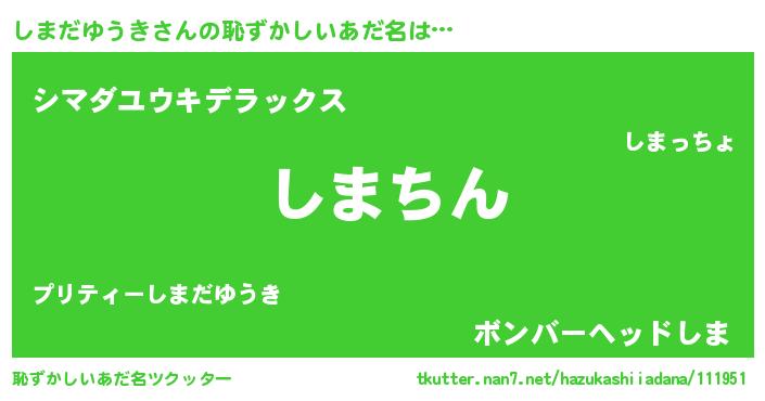 | ヘコむあだ名 | 『しまだゆうき(苦笑)』『なまこ酢』 |