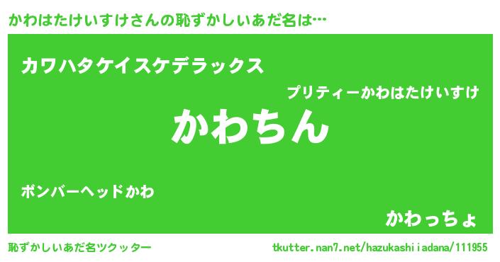 | 意味不明あだ名 | 『永久保存かわはたけいすけ』 |