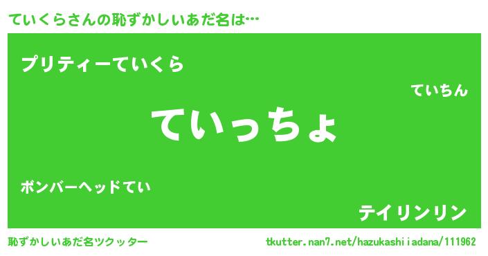 | 意味不明あだ名 | 『ていくらフォーエバー』 |